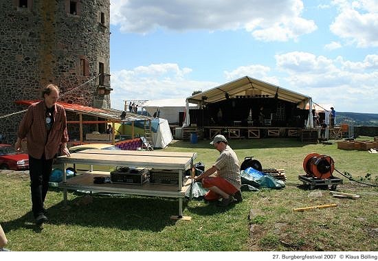 Der Tisch für das Mischpult muss exakt ausgerichtet werden, damit die Töne nicht schief laufen.